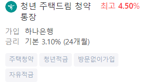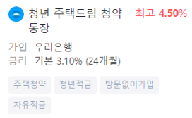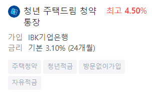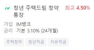 - 2년 이상: 연 3.1% (기존 청년 주택드림 청약통장 이율 적용)